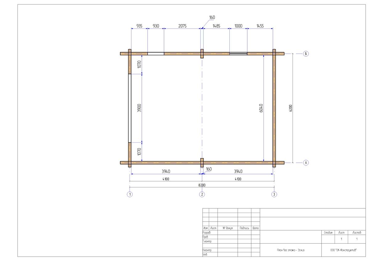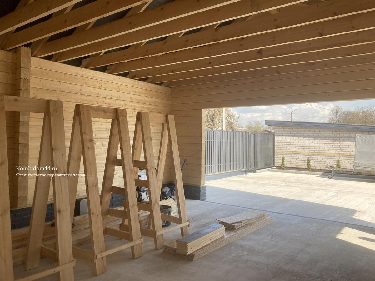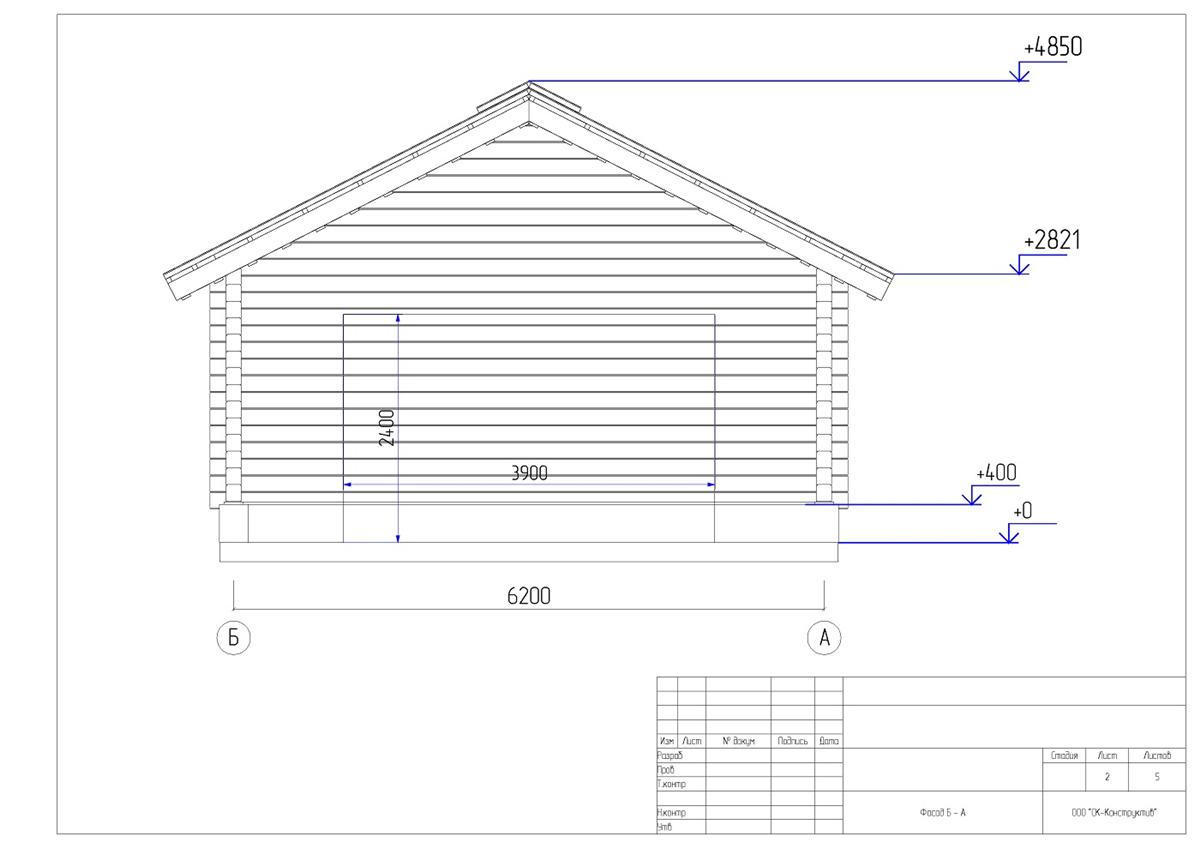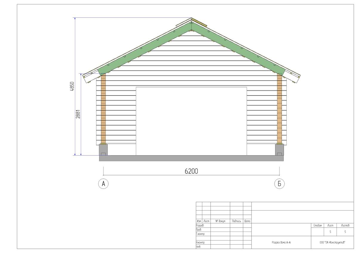 Гараж из клеёного бруса размер 8,2 на 6,2 метра.